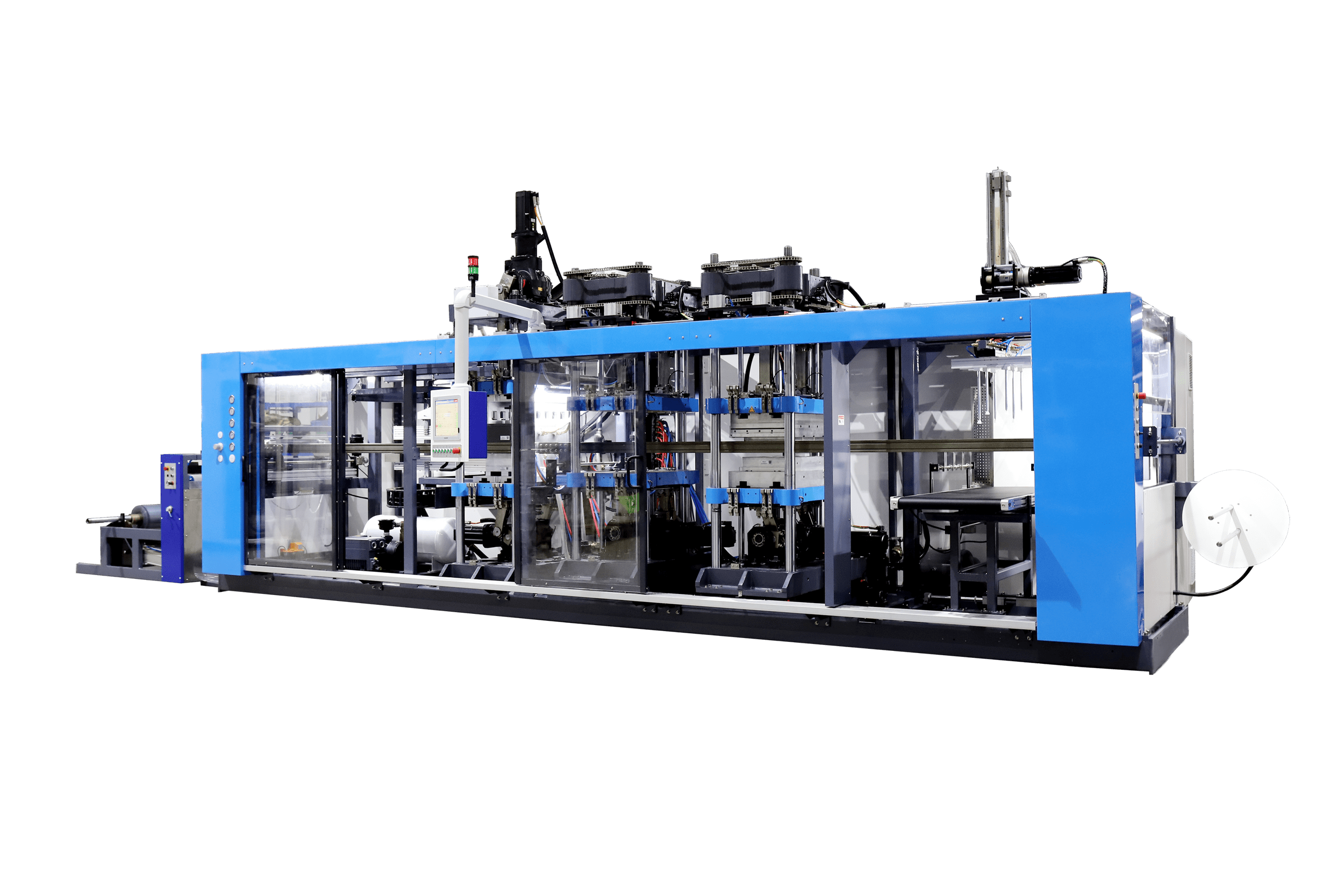 • 成形站上工作臺配備獨立伺服驅動的輔助拉伸頭,保證更好的產品質量